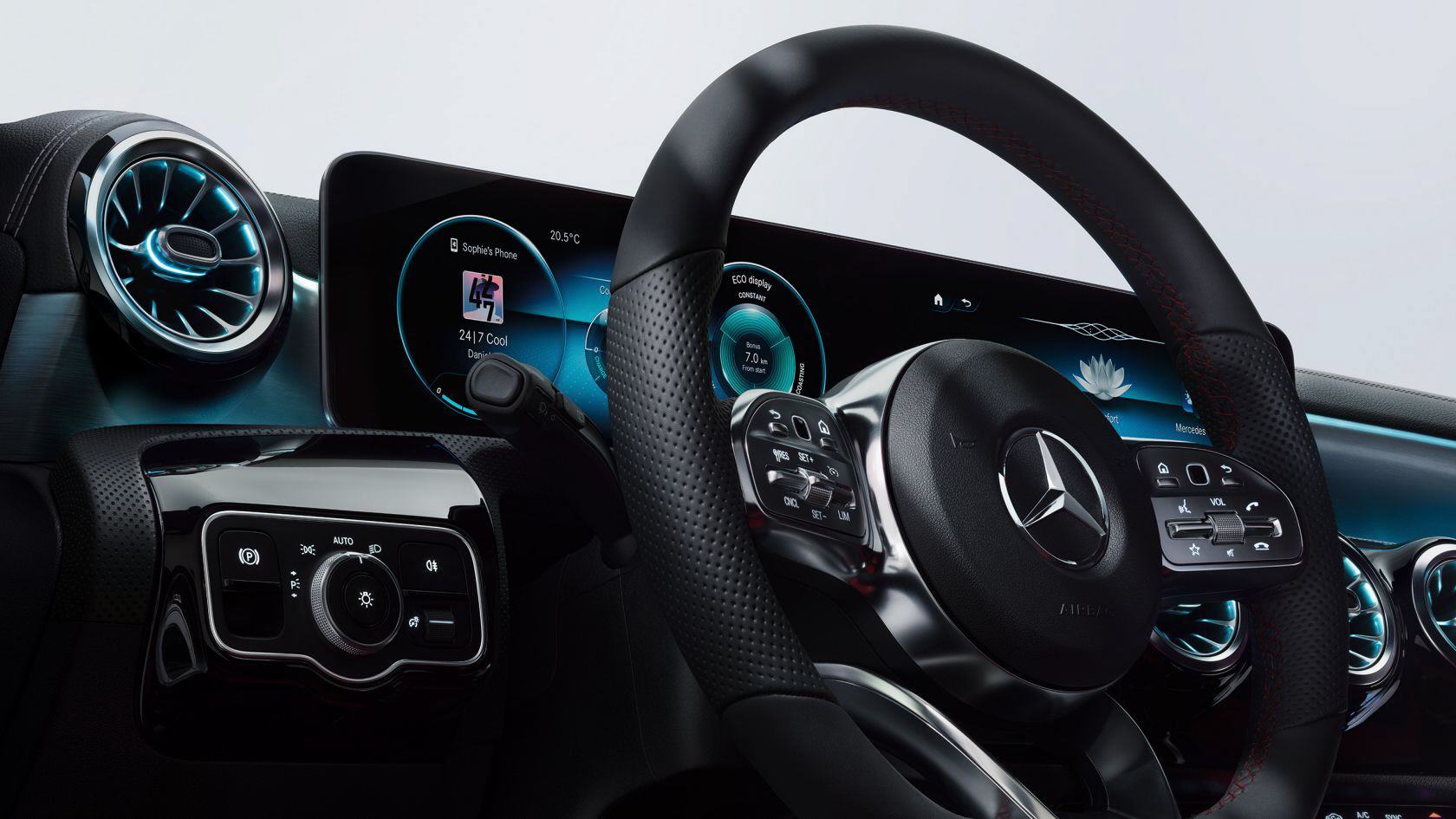 Warum wir alles berühren möchten? Weil es in unserer Natur liegt. Genau wie das Sprechen. Und das ist auch der Grund, warum sowohl das Touchpad als auch der Touchscreen und sogar Bedientasten am Lenkrad auf Deine Berührungen reagieren. Ganz einfach, natürlich und intuitiv. Genau wie auf einem Smartphone kannst Du auch für die neue A-Klasse auf Wunsch Dein persönliches Profil einrichten und speichern. Wenn Du dann einsteigst, weiß die neue A-Klasse immer sofort, was zu tun ist. Und stellt die Klimaanlage, Musik und Displays so ein, dass für Dich alles perfekt ist. Mit der neuen A-Klasse ist immer ein bisschen mehr möglich. Deshalb können Sie nicht nur die Ambientebeleuchtung Ihrer Stimmung anpassen, sondern auch die Anzeigenstile auf den Displays. Ganz individuell und intuitiv zum Beispiel über die Touch-Control-Buttons am Lenkrad.